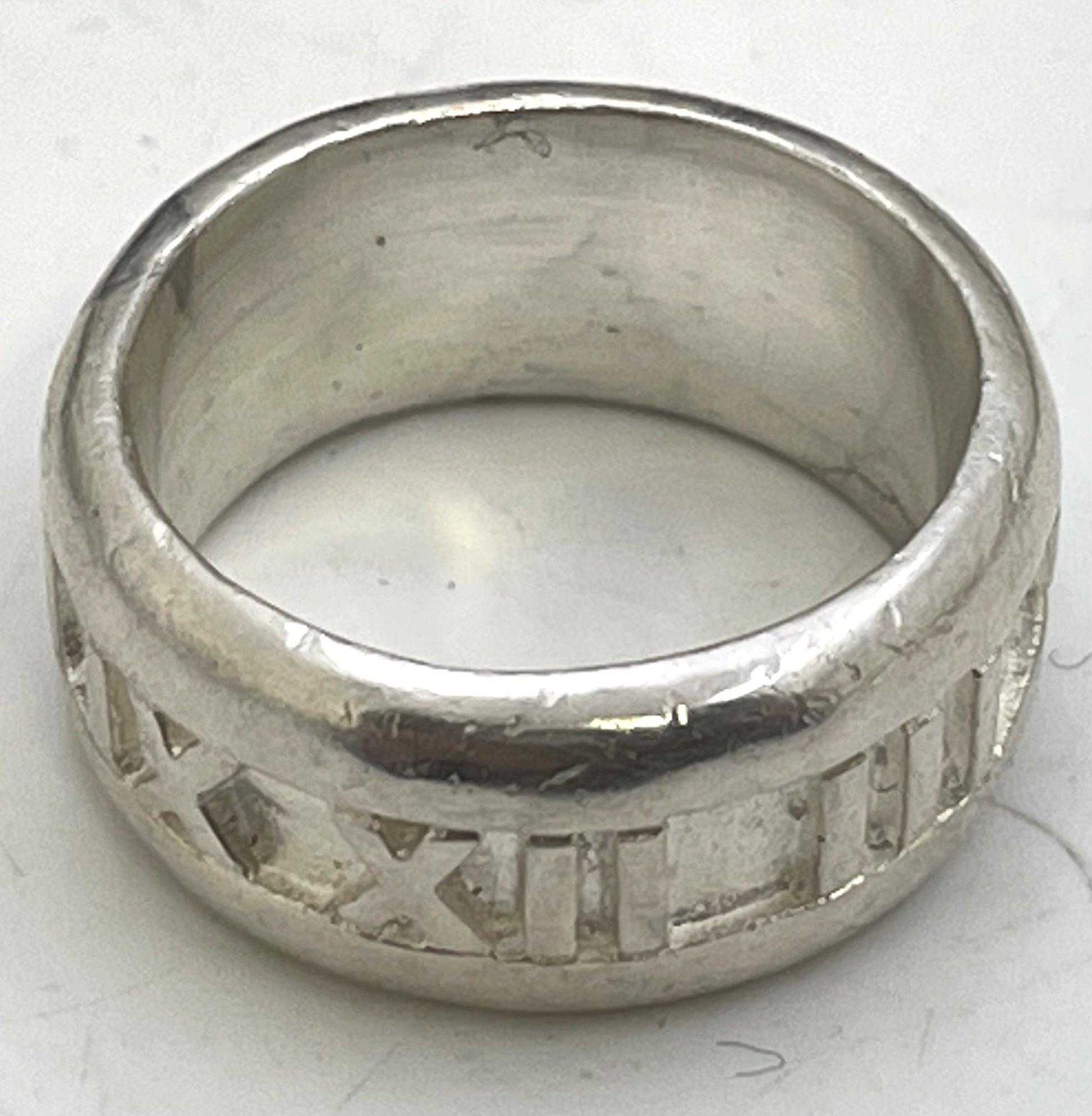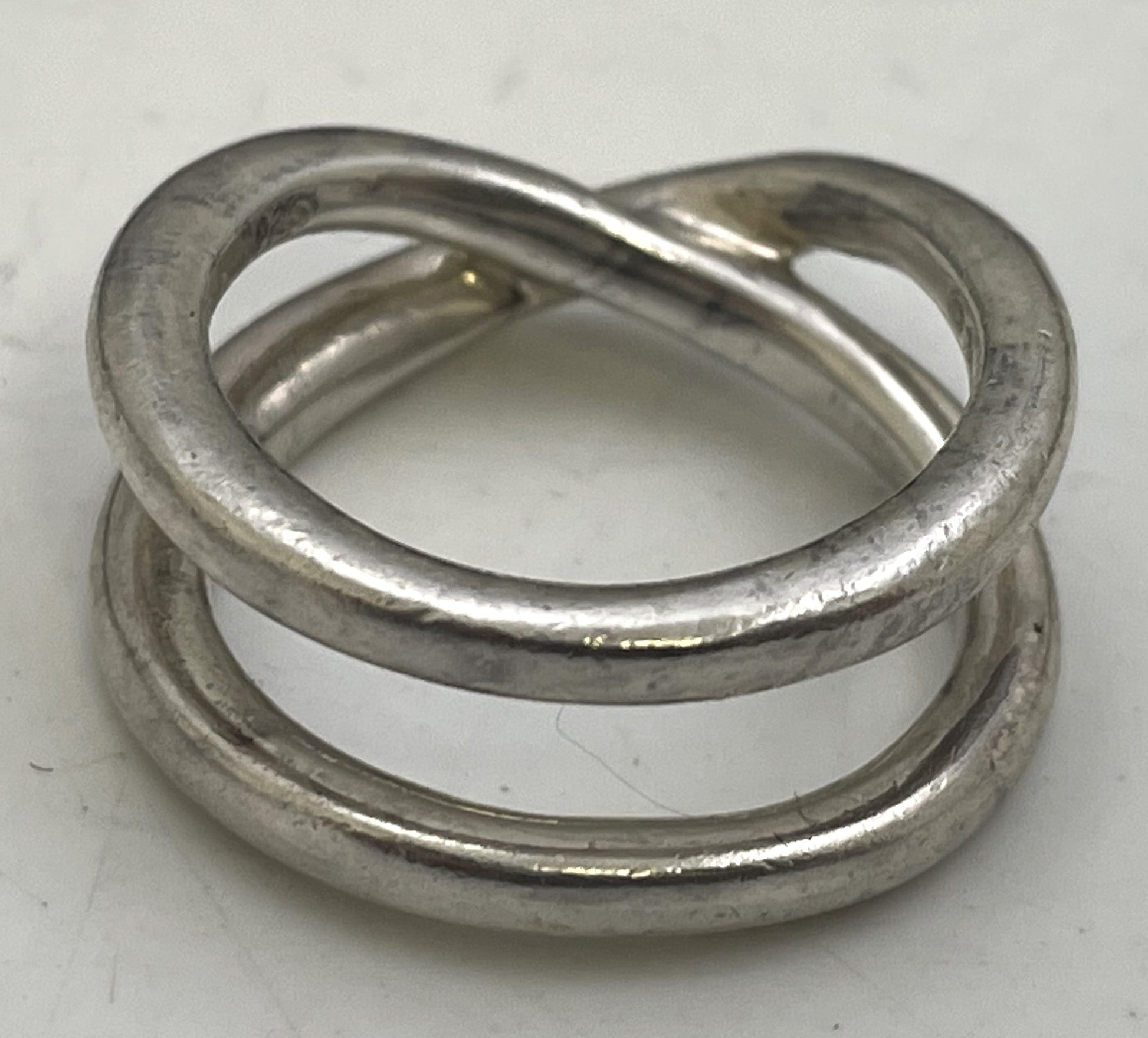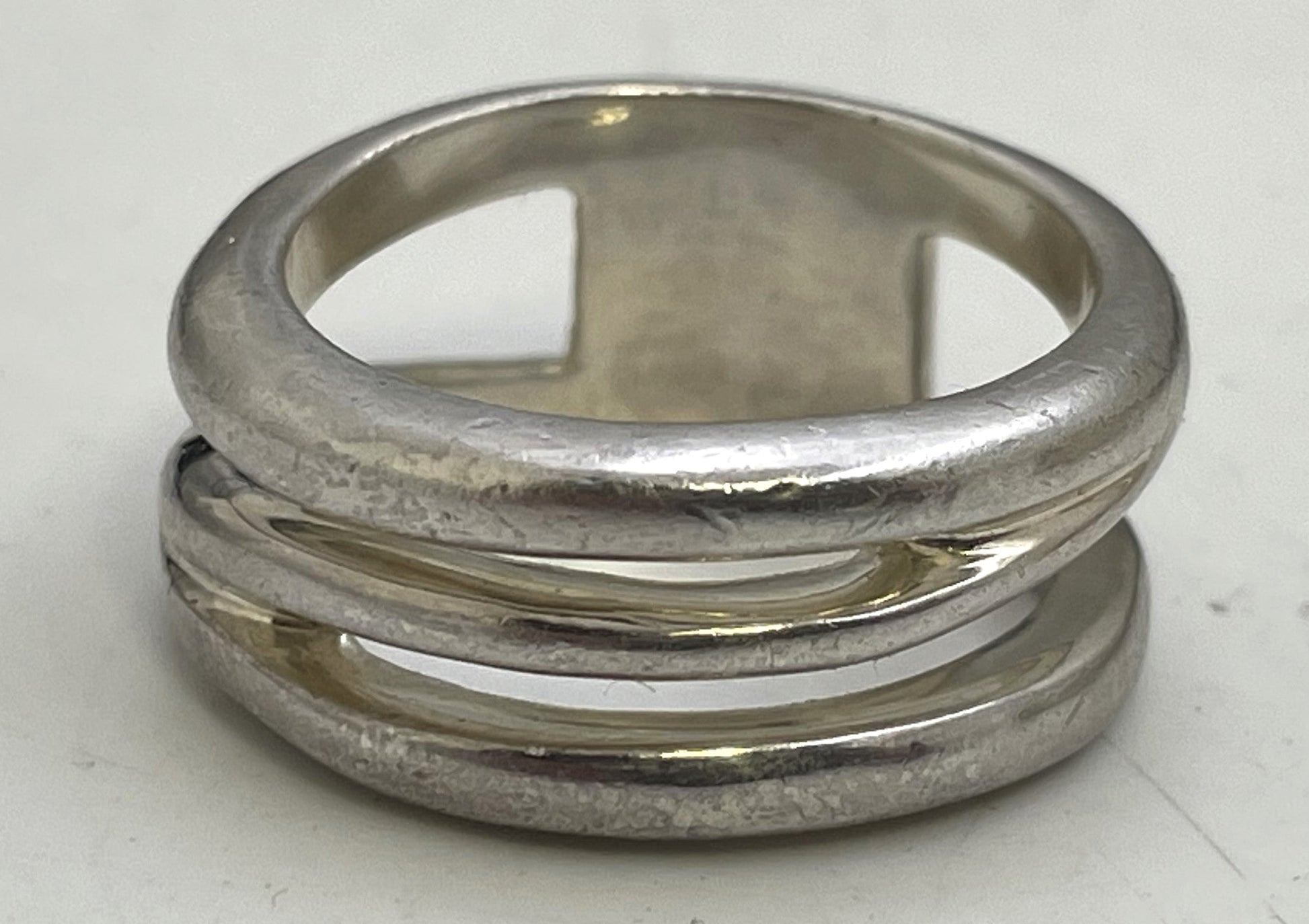 Tiffany & Co. set of 3 sterling silver rings, all in an elegant, geometric design. They all bear hallmarks as shown. Approximate ring sizes are 6 to 6 1/2.