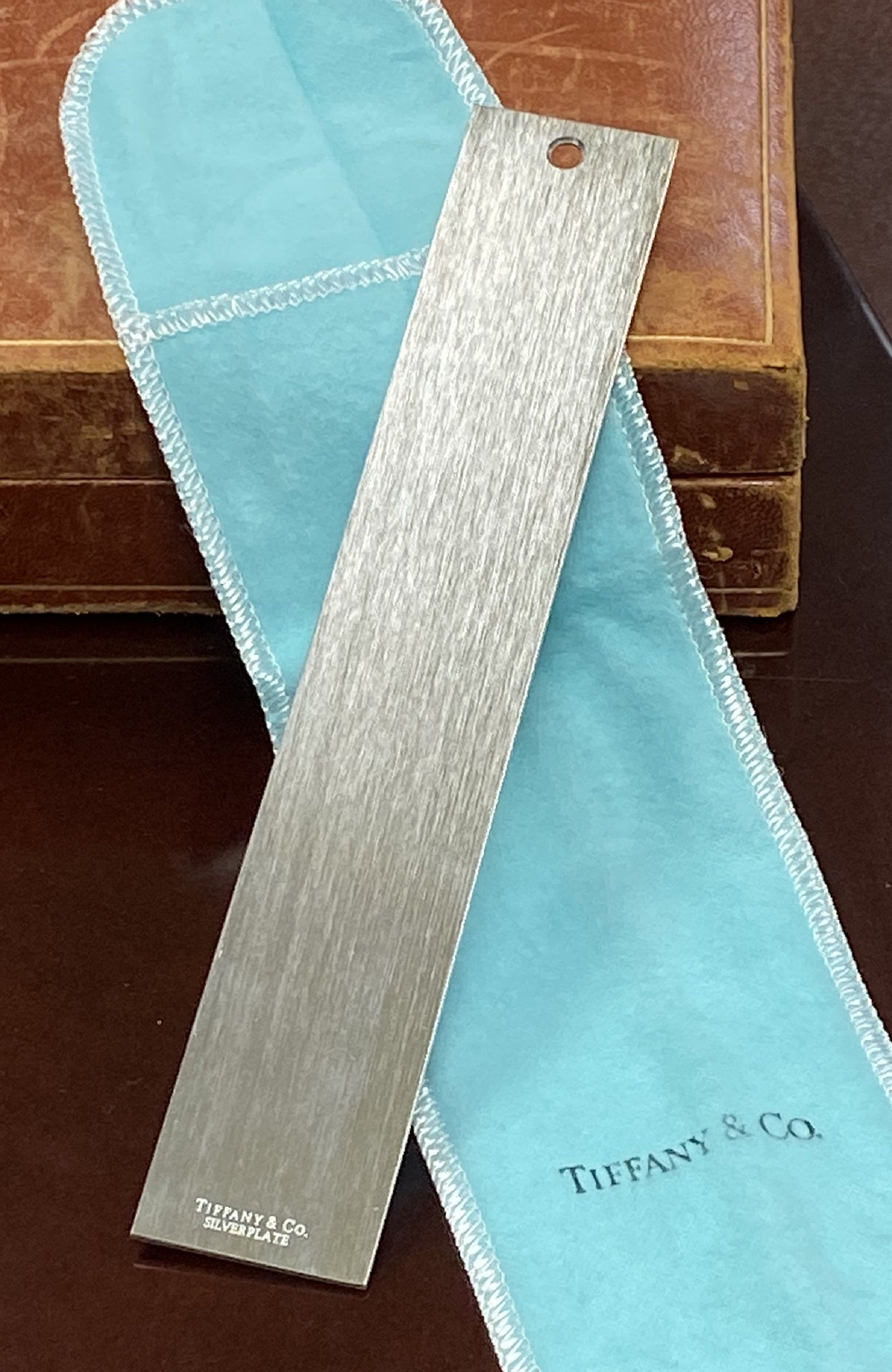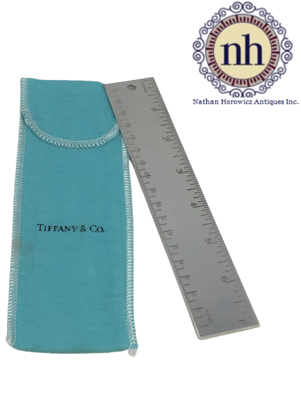 Tiffany & Co silver plate metric ruler. 7 inches, 17 centimeters, long. Comes in an authentic Tiffany & Co. branded aqua-colored felt pouch. Brand new condition. Great unisex gift for any holiday or occasion, birthday, or office.