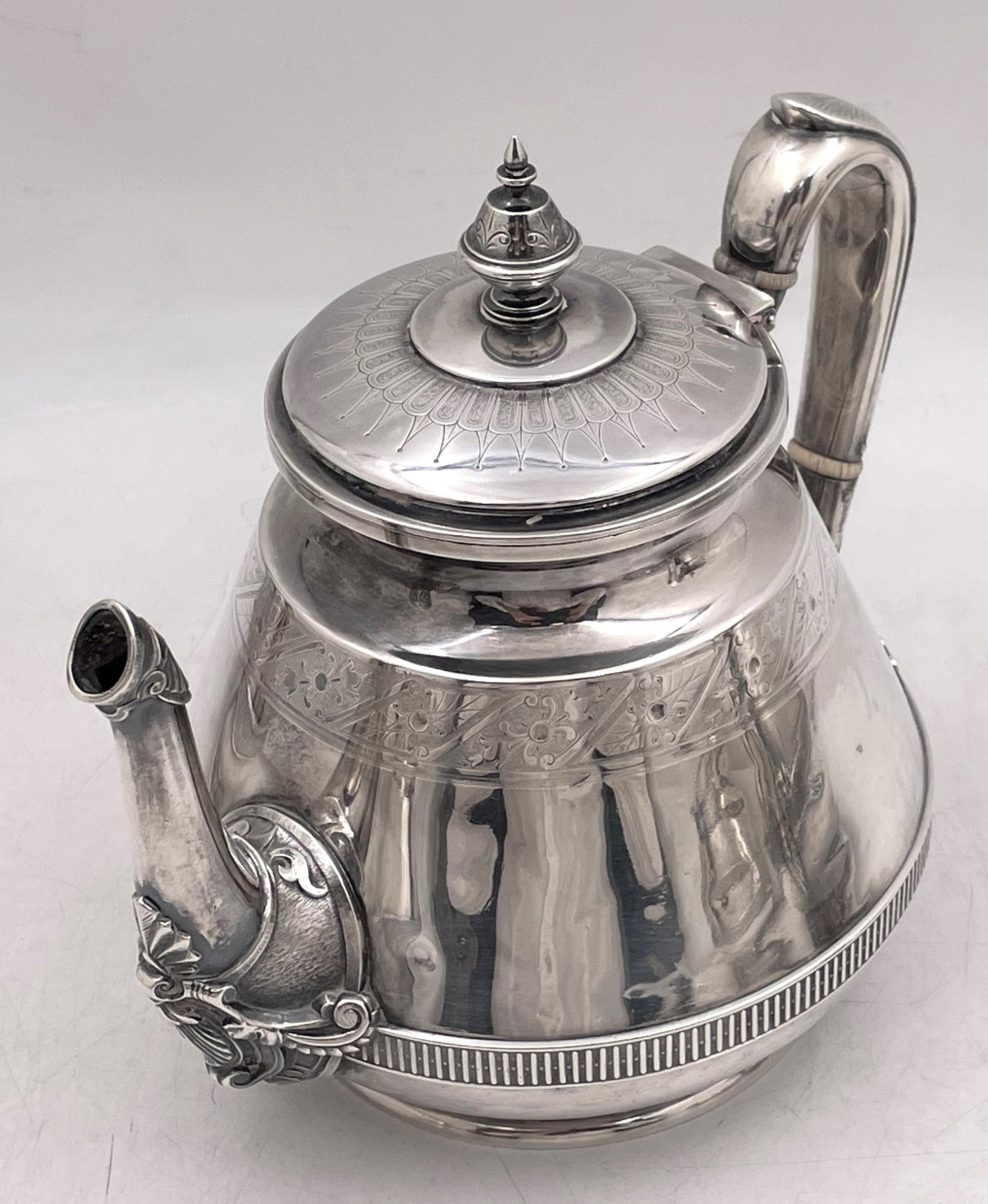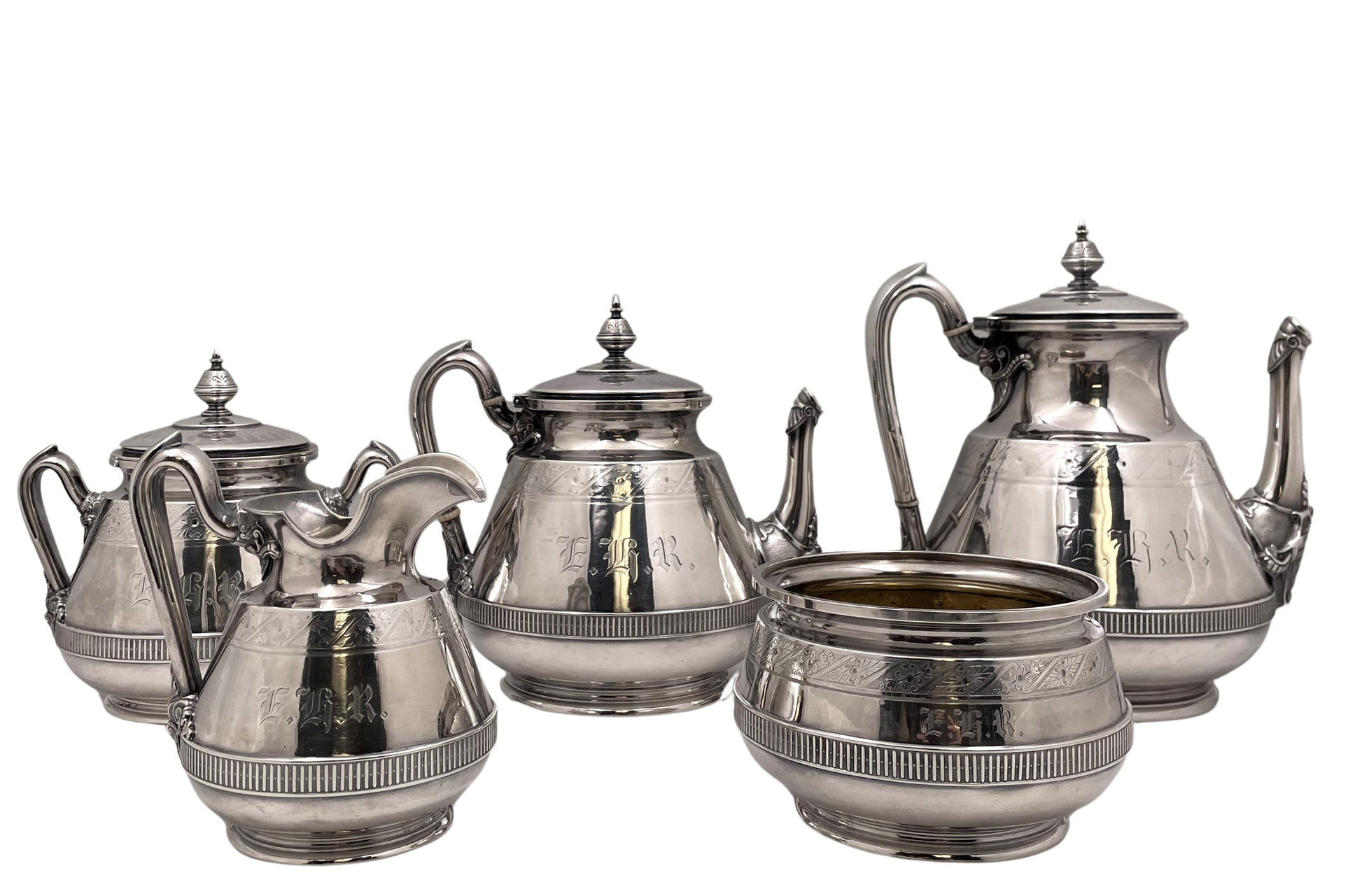 Tiffany & Co. 1875 Sterling Silver 5-Piece Tea & Coffee Set in Aesthetic Movement and in Italian Pattern