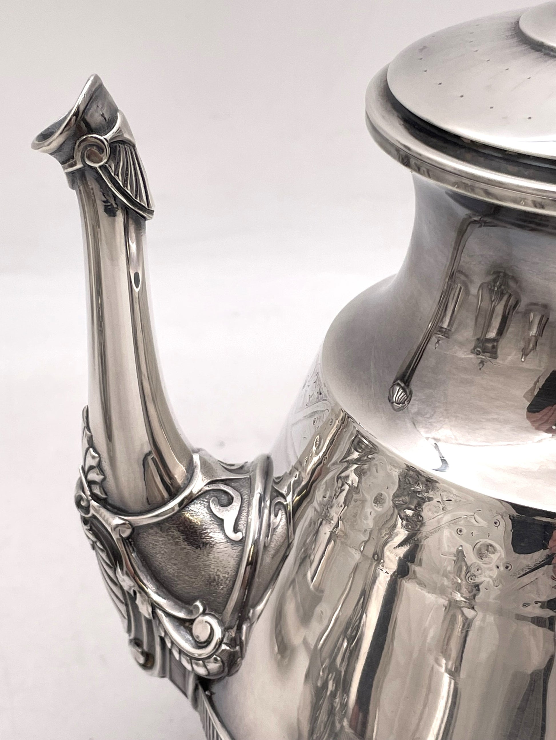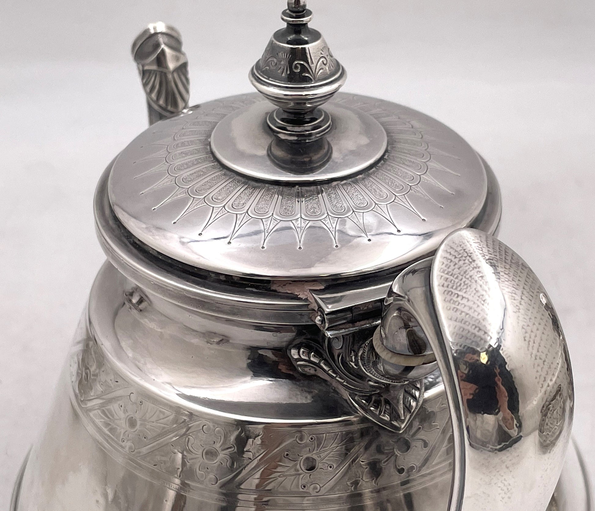 Tiffany & Co. sterling silver tea and coffee set in pattern number 3884 from 1875 and in Aesthetic style and in Italian pattern, consisting of: