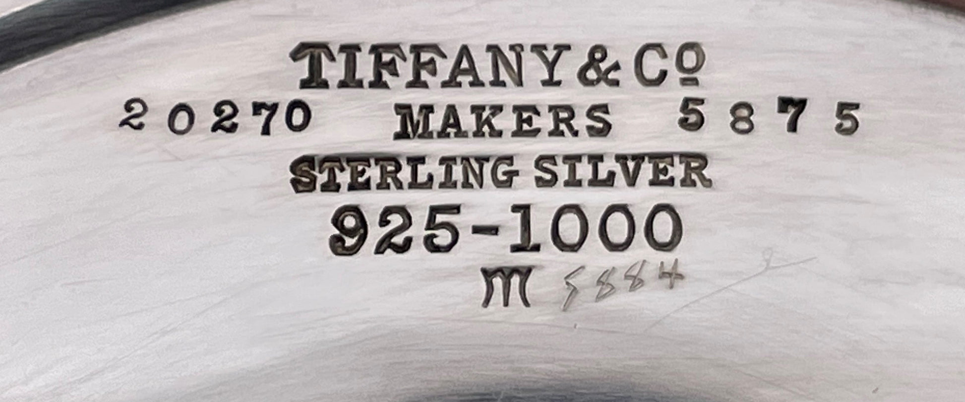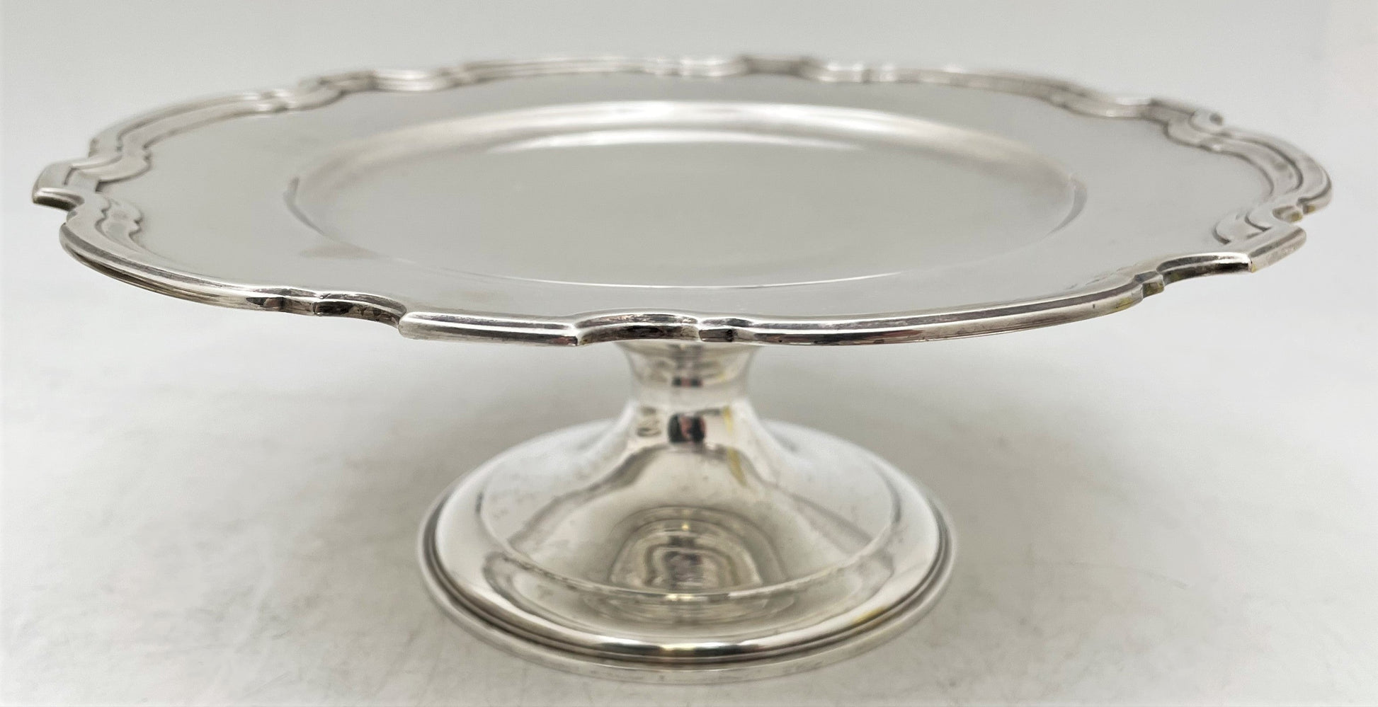 - a sterling silver tazza or footed dish in Hampton pattern number 20270 from 1923 and in Art Deco Style with a wide-shaped, geometrically inclined, curvilinear rim. It measures 9'' in diameter by 3 1/2'' in height