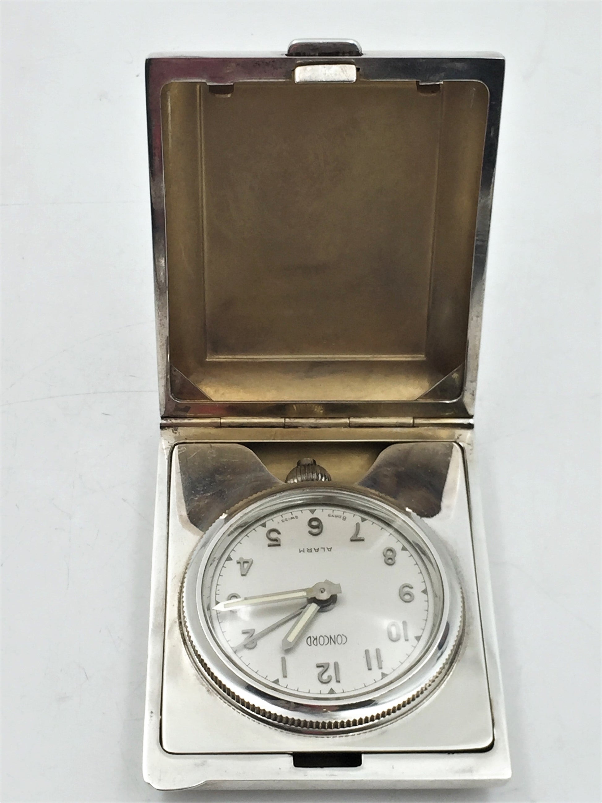 Concord clock enclosed for travel in a Tiffany & Co. sterling silver (partially gilt inside) case, all from the 1920s.