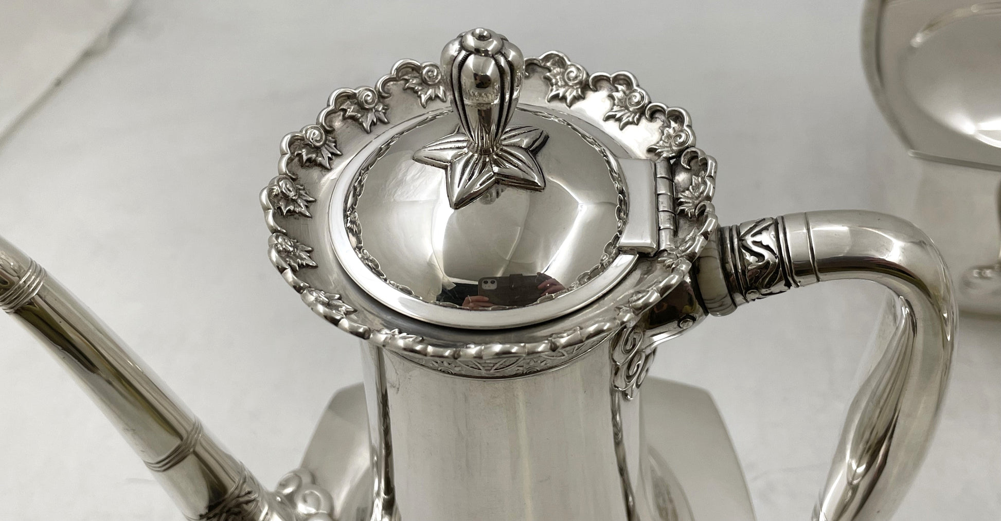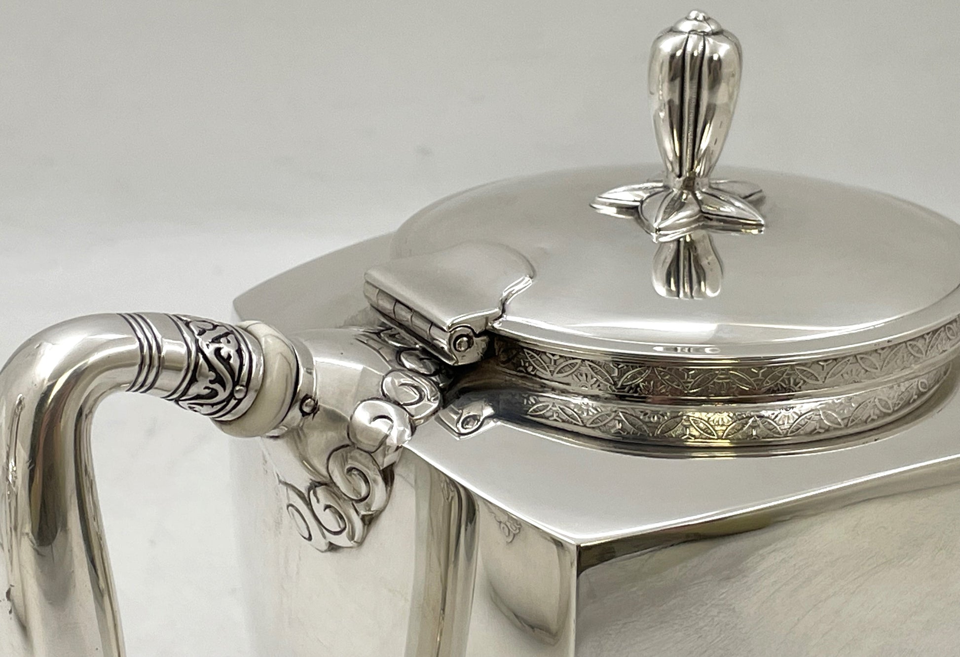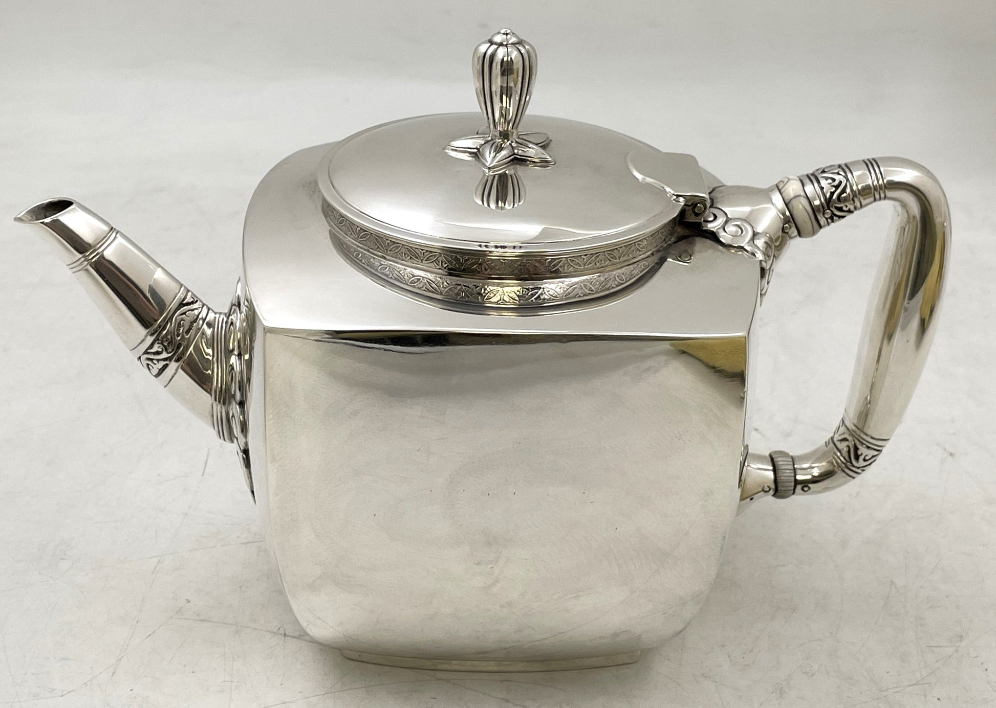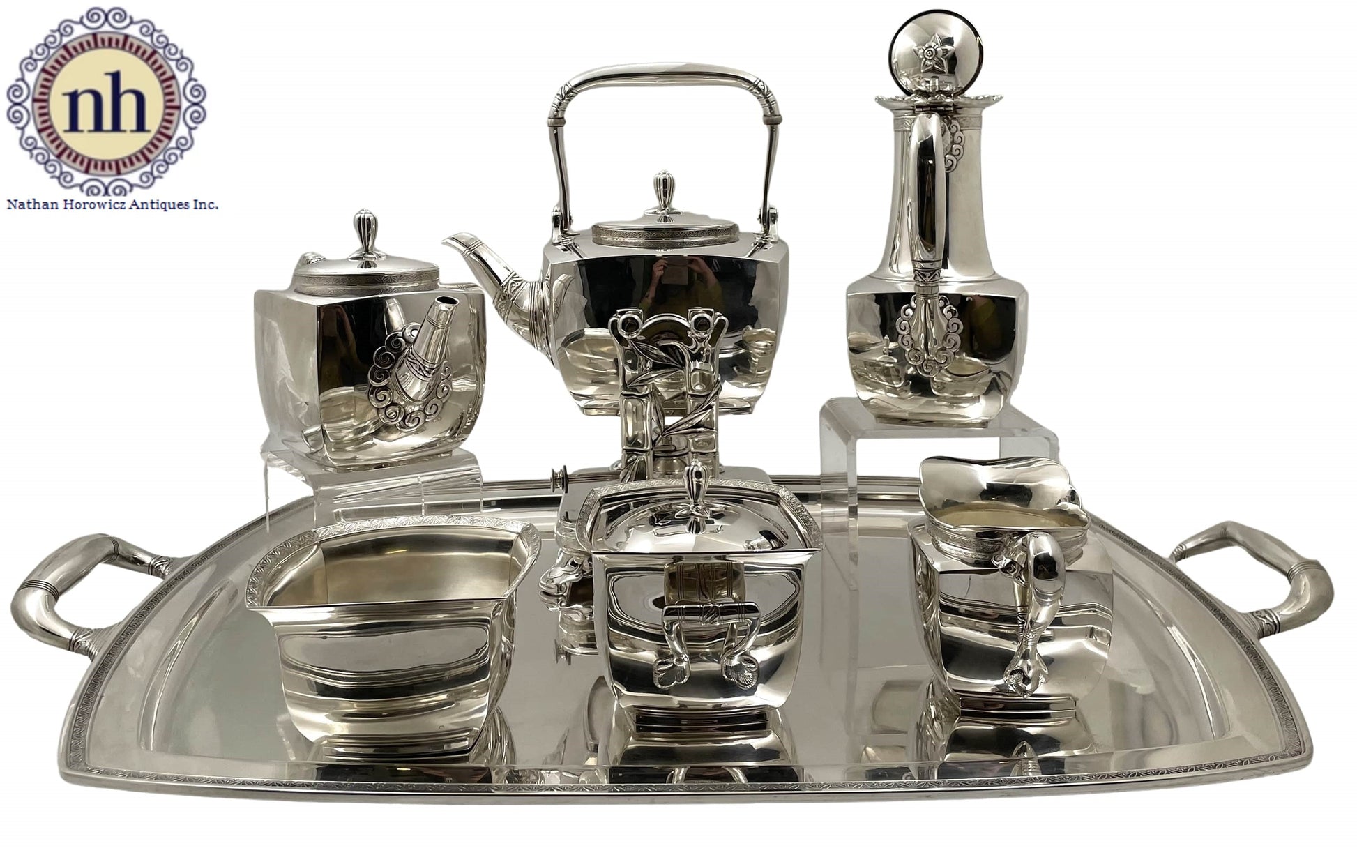 Tiffany & Co. Sterling Silver 1877 Tea & Coffee Set in Japonesque Pattern on Tray