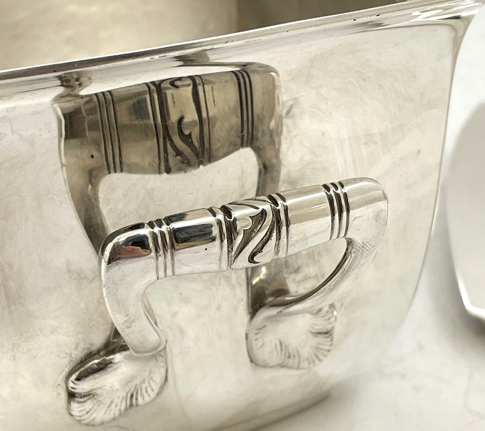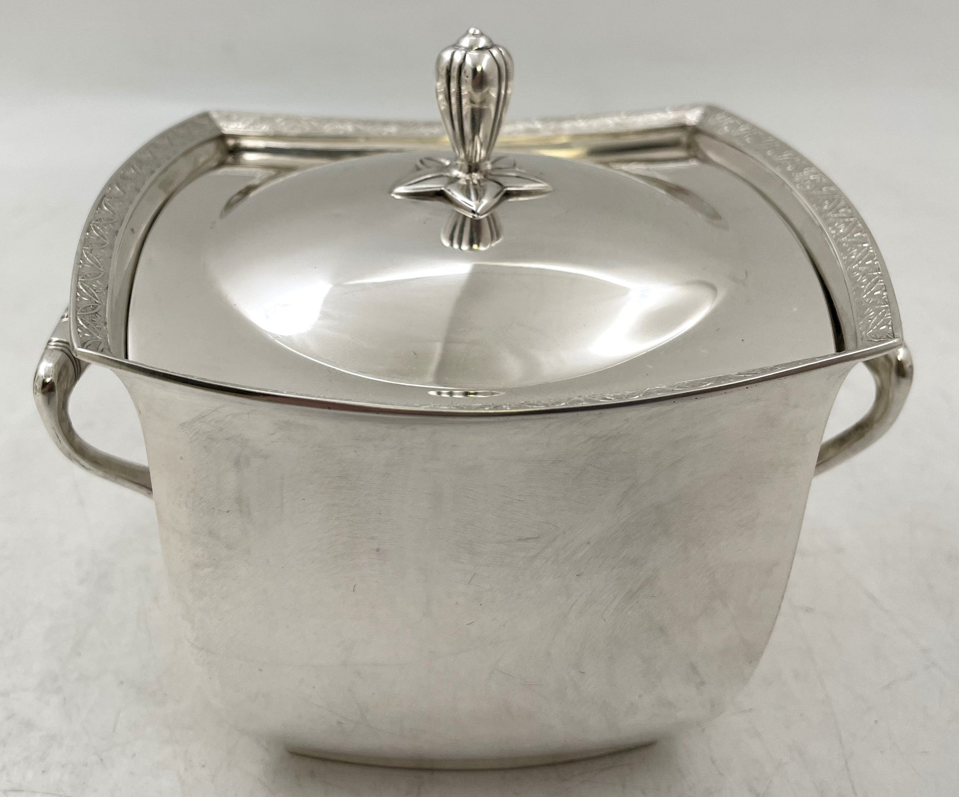 - a two-handled, covered sugar bowl measuring 6'' in width by 4 1/2'' in height