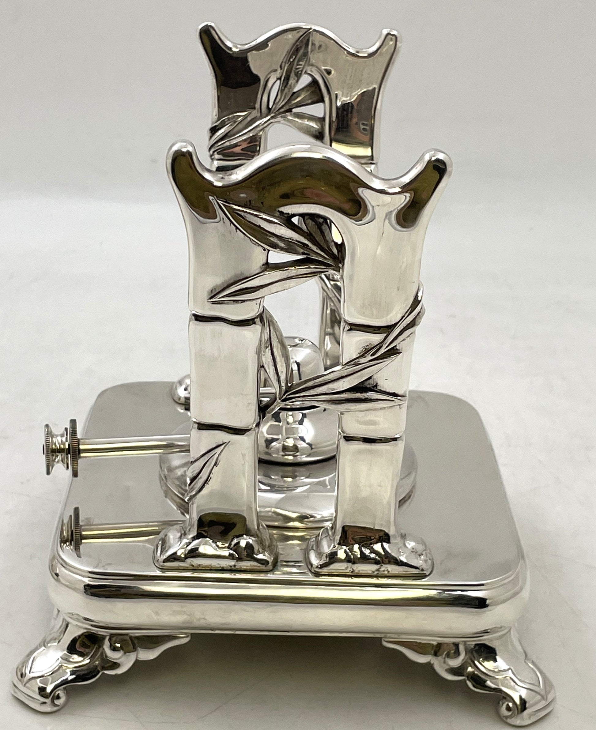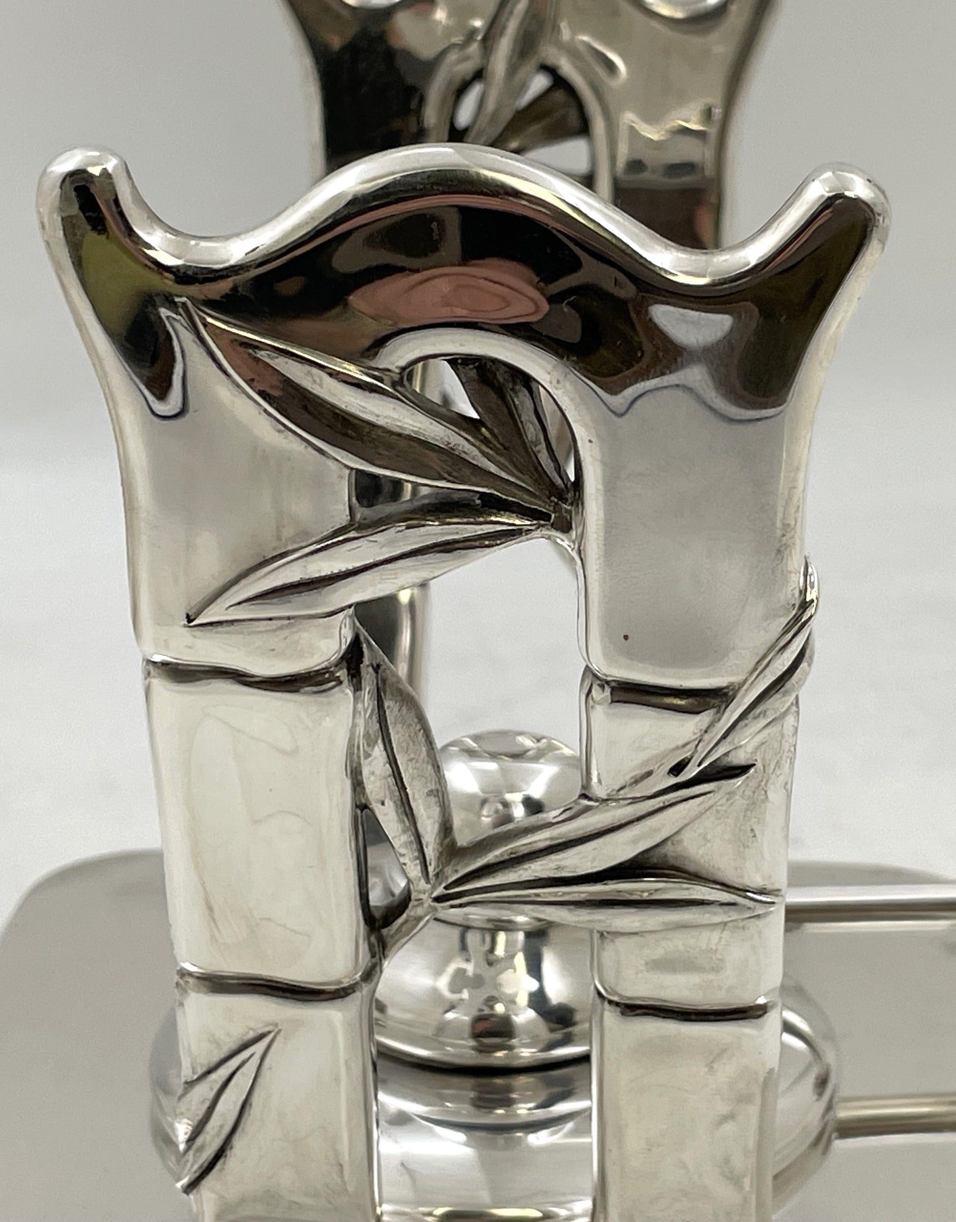 Exceptional Tiffany & Co. sterling silver tea and coffee service on a matching tray, in the celebrated Japonesque pattern, beautifully adorned with bamboo motifs as well as other stylized natural motifs in Japanese style, in pattern number 4685, from 1877, consisting of: